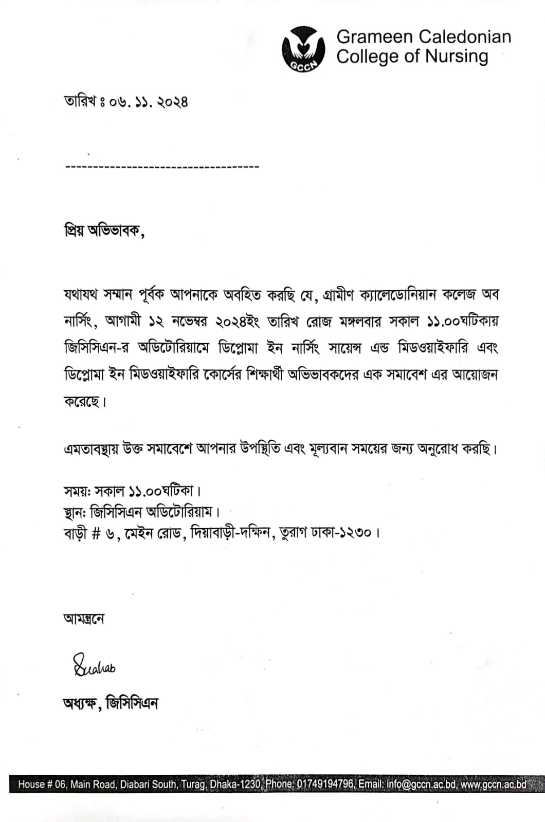 Invitation for parents of GCCN Diploma and Midwifery Students